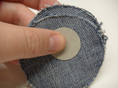 you need some super glue, fabri tac, sizzix circles #2 die, and recently rescued denim...